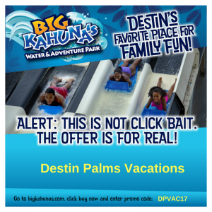 Don't want to wait in line? No problem! As a guest of Destin Palms, you can use our promocode to purchase your tickets ahead of time online at a discounted price! Pretty cool, huh?